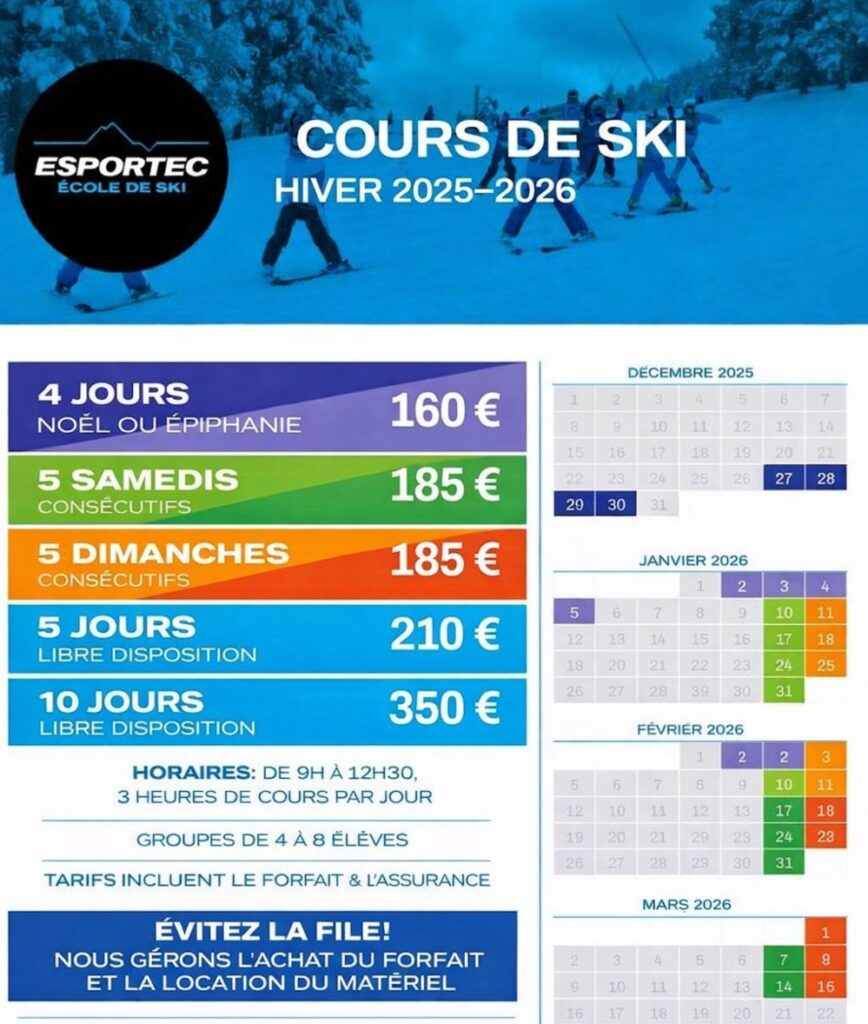 👉 Pas de souci ! Nous nous occupons de la location du matériel et de l’achat du forfait (prix non inclus).